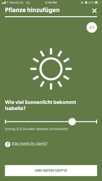 Beim Hinzufügen einer Pflanze gibst du an, wie groß die Pflanze ist und wie viel Sonne auf ihre Blätter scheint. Wir fragen dann Jörg Kachelmann, den Wetterbericht mit uns zu teilen, und die App schaut, wie viel Sonne an deinem Standort scheint. So berechnet sie, wie viel Wasser dein grüner Pflanzenfreund braucht. Make it rain!