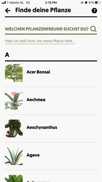 Du wählst aus einer ausgedehnten Pflanzendatenbank