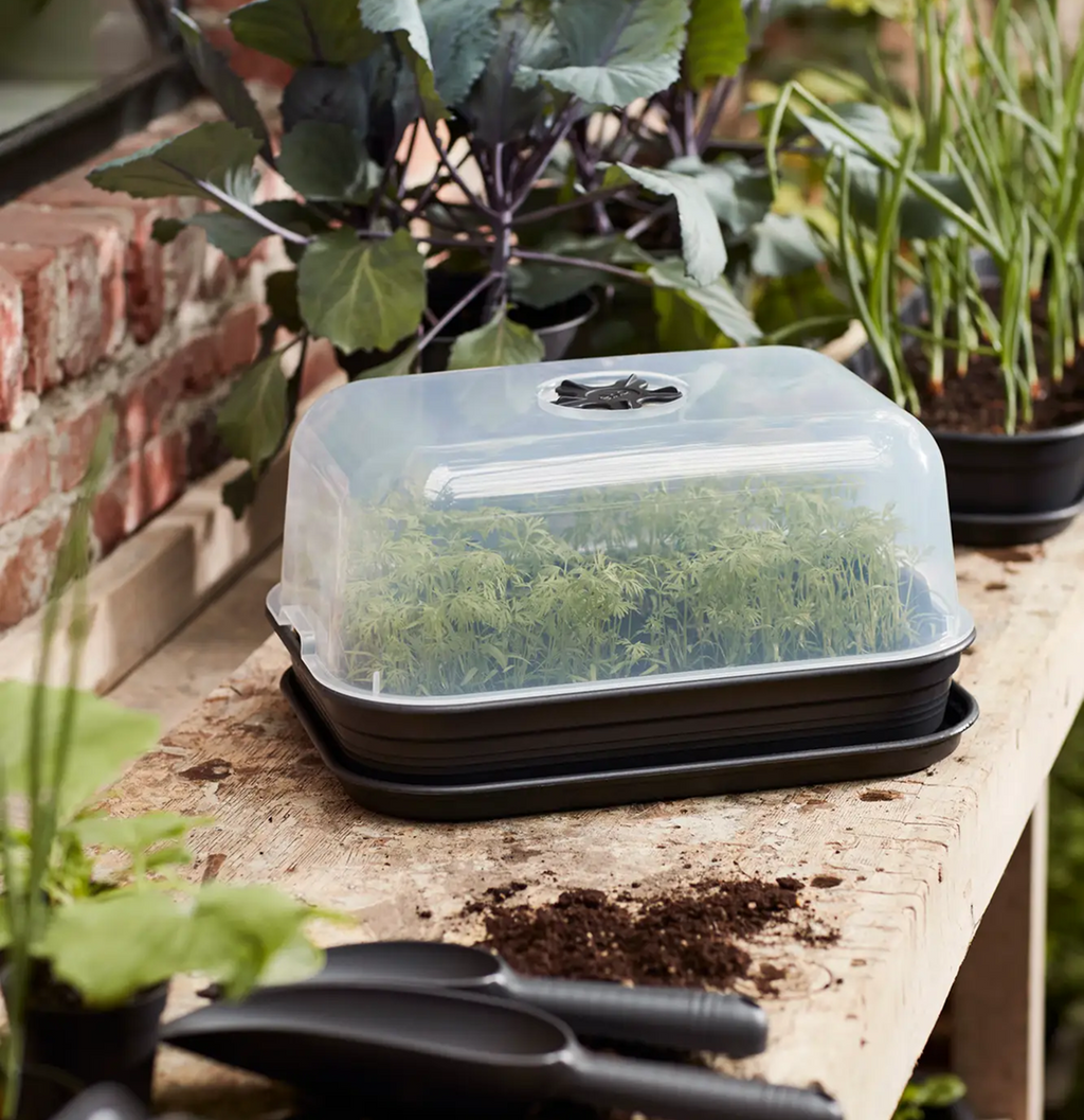Mit diesem Set kannst du ganz easy deine Pflanzen vorziehen. Schale mit Erde füllen, Samen rein – und dein Gartenabenteuer kann starten! Stell das Set einfach auf die Fensterbank oder die Küchenarbeitsplatte, selbst wenn es draußen noch kalt ist. Keine Ausreden mehr! Wenn die Pflänzchen groß genug sind, kannst du sie in Töpfe oder direkt ins Beet umsetzen.